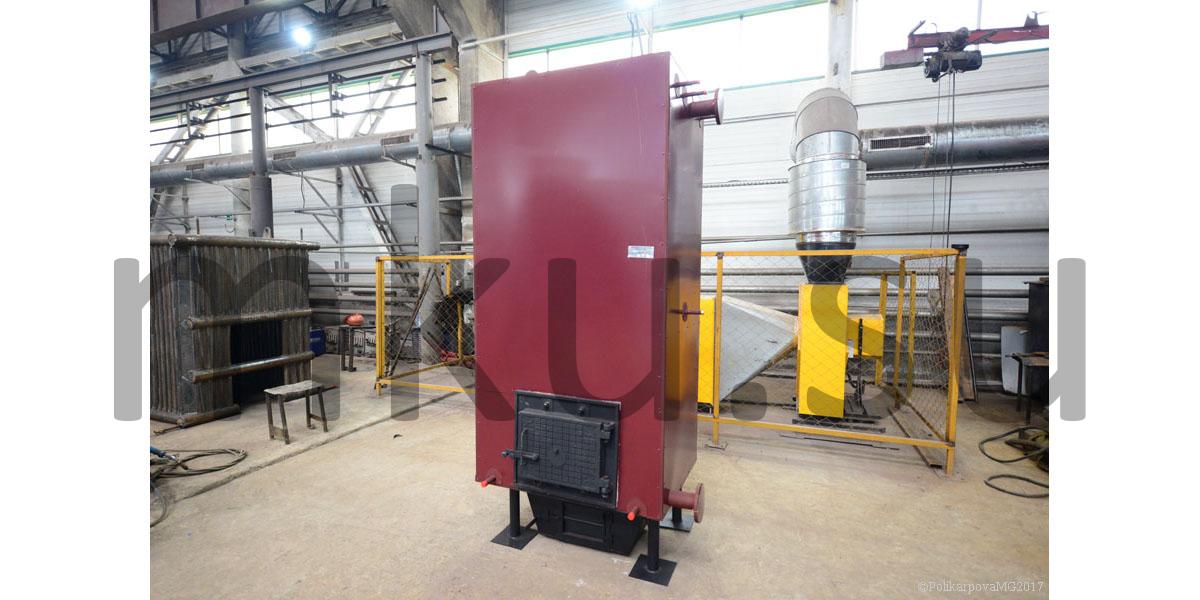 Котел для котельной топкой РПК мощностью 1,6 МВт изготавливают двухблочным: котельный блок и топка РПК. Топливо подается в топочную камеру кочегаром вручную через загрузочную дверцу. Внизу топки выполняется зольный короб с дверкой для очистки короба от золы и шлака. Топка РПК имеет ряд поворотных колосников, при повороте рычага поворотные колосники опрокидываются и накопившиеся зола и шлак сбрасываются в канал золоудаления, откуда тележкой или транспортером шлакоудаления удаляются из котельной.